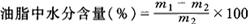 式中 m1——油样与烧杯质量(g); m2——干燥后油样与烧杯的质量(g); m——油的质量(g)。 注意: 在2个烧杯内样品的重量应相近,操作要一致,温度计水银球应全部浸入油内,但不要与杯底接触。 2次测定水分的油样平行结果允许差不超过0.04%。 2.动物油脂水分的测定 于直径为50mm的称量瓶中,放入5~6g洁净、灼烧过的细沙,并放入一根短小的玻璃棒。置100~105℃烘箱中2h,置干燥器中15min后称量,直到恒重。加入油样3~5g,用玻璃棒充分搅拌后称量(称准至0.0002g)。将上述称量瓶于烘箱内在100~105℃干燥1h,置干燥器中冷却15min称量。以后每干燥30min称一次,直到连续2次称量之差不超过0.001g为止。但干燥过程不要超过3h,温度不得超过105℃,也不应低于100℃。 计算: