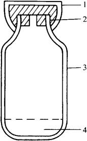 式中 m0——瓶、塞和DMA的质量(g); m1——瓶和塞的质量(g); m2——m0加六号溶剂的质量(g); 0.935——DMA在20℃时密度(g/mL)。 (3)仪器:气化瓶(顶空瓶)(图4-2-30):体积为100~150mL,具塞。气密性试验:把1mL己烷放入瓶中,密塞后放入60℃热水中30min,密封处无气泡外漏(图4-2-30)。