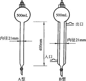 式中 A——猪油相应的浓度。 14.食用植物油煎炸过程中的极性组分(PC)的测定——柱层析法 (1)原理:经过煎炸的油脂通过装有吸附了一定水分的硅胶柱时,在流动相的洗脱下,其中的甘油三酸酯(即经煎炸未改变的油脂)首先被洗脱而流出色谱柱。挥去洗脱剂,称量,即为非极性组分的质量,用上柱样品的质量减去非极性组分的质量就是极性组分的质量(即经煎炸后发生了化学变化的油脂)。 本法适用于煎炸各种食品的植物油、动物油及精炼油中的极性的组分的测定。 (2)试剂: ①硅胶(柱层析用):粒度范围60~100目,按下面的方法使其含水量为5%;置硅胶于160℃烘箱中干燥24h后取出,置干燥器中冷却至室温,然后称取152g硅胶和8g水,放入500mL带有玻璃塞的磨口锥形瓶中,机械振摇1h,密封备用。 ②石油醚(沸程30~60℃)∶乙醚洗脱剂:87∶13(体积分数)。 ③海砂:通过煅烧和酸洗纯化。 ④10%钼磷酸乙醇溶液显色剂。 ⑤高效薄层硅胶G板(无荧光)。 (3)仪器采用B型柱:采用两种类型的层析柱,当实验室温度在25℃以下时,可采用A型(常用)层析柱;超过25℃时,采用带有循环水套的B型柱,见图4-2-31。