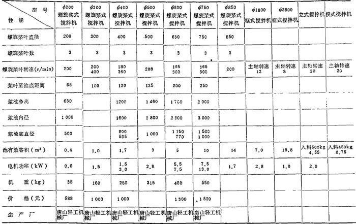 表2-18 泥浆螺旋搅拌机性能规格