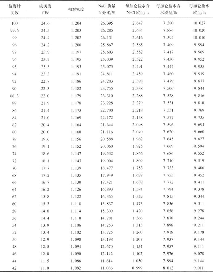 | 释义 | 注射与腌制 火腿肉的腌制方法通常有以下几种: 1.干腌法 将腌制料揉搓在火腿肉的表面,然后逐层地放在腌制槽内。将揉搓剩余的腌制料撒在腌制肉的最上面。这种腌制方法在腌制过程中要注意倒堆(倒缸),并且有时腌制料的添加是分次加入的,腌制速度极慢,且腌制不均匀,主要用于传统生干火腿的加工,如金华火腿和帕尔玛火腿等。 2.湿腌法 把腌制料先配成盐卤,然后把肉浸泡其中的腌制方法。与干腌法相比,缺点是蛋白质流失太多,投资大,原料肉不易长期保存,优点是腌制速度快,颜色好,且盐卤可反复使用。在配制盐卤时,要确定卤水中的食盐含量。可使用盐度计测量,有时也用波美度表示。表2-8一1所示为纯盐在纯水中的卤水特性,盐度计读数是15.56℃温度条件下读取的,超过15.56℃,按表2-8-2进行换算。如果卤水中还含有白糖、维生素C、硝酸盐与亚硝酸盐,那么,它们都可影响盐度计读数,其中相同浓度的白糖和食盐相比,盐度计读数为食盐的一半。维生素C、亚硝酸盐与硝酸盐由于添加量太少,对盐度计的影响可忽略不计。另外,磷酸盐的存在也将一定程度地影响盐度计的读数。 表2-8-1 卤水特性表(15.56℃)