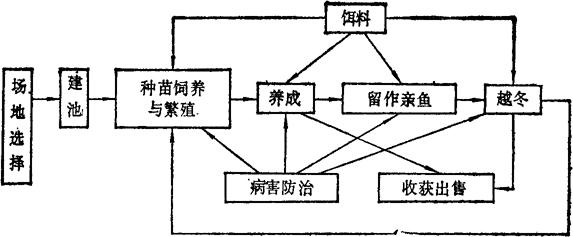 图37—5 斑海马 海马广泛分布于热带、亚热带及温带沿海。中国沿海均有分布,南海种类多,有5种。作为养殖品种主要有管海马和斑海马两种。 二、生态习性 1.栖息习性 海马栖息在浅海或内湾,风浪较平静,水质澄清,藻类繁衍的低潮区。平时尾卷在海藻或飘浮物上,活动能力差,依靠骨环、保护色及拟态来防避敌害和诱食饵料。适温范围为12—33℃,最适水温25—29℃。海马仔鱼对水温要求较严格。培苗最适水温为25—28℃,只是不同种类间有所差异。海马是广盐性鱼类,在盐度10—30‰之间均能生活,仔鱼最适盐度为15—22‰,对水中含氧量要求在3mg/L以上,低于2.5mg/L时,出现不适。适宜的光照强度为3000—60001x。水的透明度要在1.5m以上。pH适宜范围为7.8—8.4。 2.食性 海马的饵料主要是小型甲壳类。仔、幼鱼主要摄食桡足类幼体及成体。成鱼主要食虾类,如糠虾、毛虾、磷虾、萤虾、钩虾、麦秆虾及各种虾类的幼体。 3.生长与繁殖 海马中以斑海马生长最快,养殖3个月体长可达11cm;管海马次之,约9cm;日本海马生长最慢,约5.5cm。斑海马和管海马体长为12—14cm以上可达性成熟,开始产卵繁殖。海马雌雄异体。繁殖的适宜水温是20—30℃,最适温是25—28℃。广东、广西沿海的繁殖期为3—11月,其中5—9月为盛期。性成熟的雌雄鱼,往往在清晨发情,双双并列,雄鱼追逐雌鱼,体色变成黄白色。兴奋达到高峰时,雌雄鱼体紧紧靠近,腹部相对,雄鱼张开育儿囊口,雌鱼将卵排入,并在此刻受精,受精卵在育儿囊内孵化,发育成仔海马后,再由育儿囊产出,进入水中自由生活。在水温25—28℃,上述过程约需12—14天。 海马每年能产仔数胎至十余胎,每胎产仔数百尾至一千多尾,以1—2龄鱼的产仔数多。人工养殖的海马有少量不育现象。海马寿命一般为2—3龄,管海马可达5龄以上。 三、海马的养殖 1958年广东省汕头市郊首先人工试养海马成功,之后海马养殖逐渐发展。海马的养殖过程可用下面图式表示。
