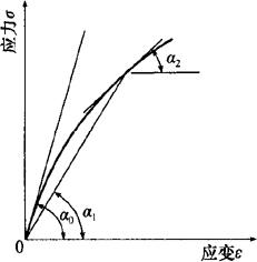 图5-23 硬化水泥浆体、骨料与混凝土的应力-应变关系 (a)硬化水泥浆体、骨料与混凝土的应力-应变曲线;(b)混凝土在加/卸载循环时的应力-应变关系 在应力-应变曲线上任一点的应力σ与其应变ε的比值,称为混凝土在该应力下的变形模量,这个变形模量反映混凝土所受应力与所产生应变之间的关系。在计算钢筋混凝土结构的变形、裂缝开展及大体积混凝土的温度应力时,均需要知道该时混凝土的变形模量。在钢筋混凝土构件设计中,常采用一种按标准方法测得的静力受压弹性模量作为混凝土的弹性模量。 根据国家标准《普通混凝土力学性能试验方法标准》(GB/T50081-2002)中的规定,采用150mm×150mm×300mm的棱柱体作为标准试件,取测定点的应力为试件轴心抗压强度的40%(即σ=0.4fcp),经3次以上反复加荷与卸荷后,测得的变形模量值,即为该混凝土的弹性模量。 混凝土的变形模量有三种表示方法,即初始弹性模量E0=tanα0、割线变形模量Eg=tanα1和切线弹性模量Eh=tanα2,如图5-24所示。混凝土的强度等级越高,弹性模量也越高,两者存在着一定的相关性;试验证明:当混凝土的水灰比较小,养护条件较好及龄期较长时,混凝土的弹性模量也越大。混凝土的强度等级由C15增高到C30时,其弹性模量大致由2.20×104MPa增至3.80×104MPa。