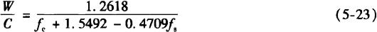 (2)确定混凝土的水灰比 瑞士学者保罗米通过大量混凝土试验研究,应用数理统计的方法,提出了混凝土强度与水泥强度等级及水灰比之间的关系式,即混凝土强度公式: