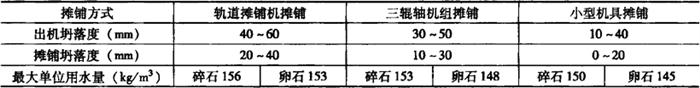 表5-69 不同路面施工方式混凝土坍落度及最大单位用水量