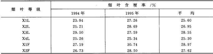 表4-6-1 河南烤烟(40级)烟叶含梗率测定结果
