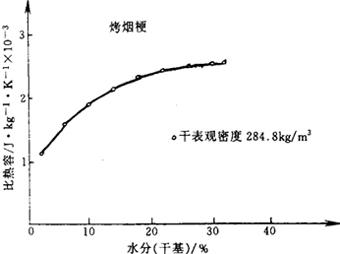 图4-6-21 河南中部三级烤烟比热容随含水率变化的曲线