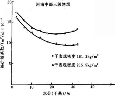 图4-6-26 河南中部三级烤烟热扩散率与含水率的关系曲线