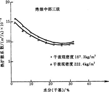 图4-6-28 中部二级白肋烟热扩散率与含水率的关系曲线