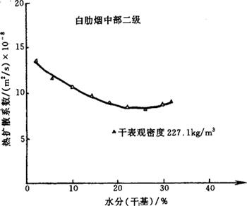 图4-6-29 白肋烟梗热扩散率与含水率的关系曲线
