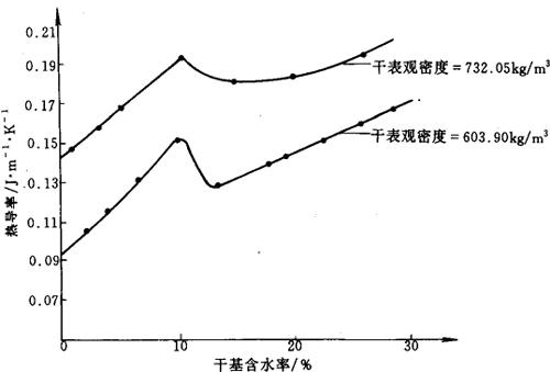图4-6-31 香料烟堆积热导率与含水率的关系