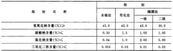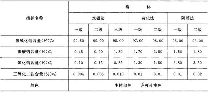 表3-1-1 固体烧碱质量标准(GB209-63)