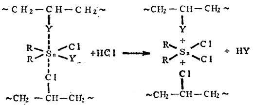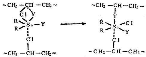 在配位体中,有机锡的Y基与不稳定氯原子发生置换: