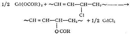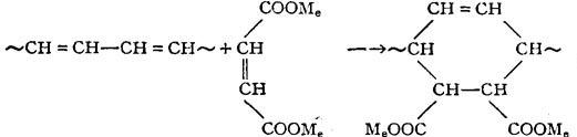 使用硫醇盐型有机锡稳定剂时,不稳定氯原子是被硫醇基所置换。该类稳定剂还可捕捉氯化氢生成氯化锡化合物(R2SnCl2),虽然也具有路易斯酸的性质,但与CdCl2不同,不促进聚氯乙烯的分解。此外,捕捉氯化氢所生成的硫醇酸酯(HSCH2OCOR)可与双键发生加成反应,破坏共轭多烯结构。 3.不饱和酸的盐或酯 由不饱和酸形成的热稳定剂中含有双键,它可与聚氯乙烯分子中的共轭双键发生双烯加成反应,从而破坏共轭结构,,抑制变色。以马来酸盐为例,反应如下:
