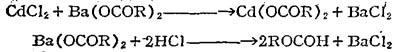 4.钡镉复合稳定剂 钡皂和镉皂并用有协同效应。镉皂有较强的置换不稳定氯原子的能力,但生成的氯化镉有促进聚氯乙烯脱氯化氢的作用。钡皂可以把氯化镉再生为镉皂,而且还可与放出的氯化氢反应,进一步抑制聚氯乙烯的降解。反应过程如下: