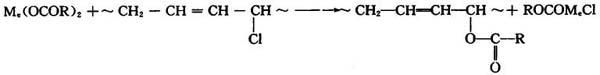 金属皂也可与氯化氢反应,抑制其对聚氯乙烯降解的催化作用,反应分两步进行: