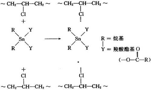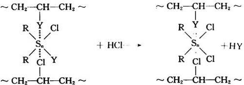 (2)有机锡 有机锡稳定剂可与聚氯乙烯分子的不稳定氯原子发生配位结合: