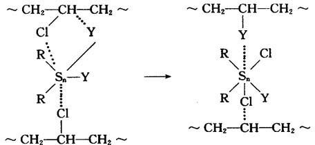 在配位体中,有机锡的Y基与不稳定氯原子发生置换: