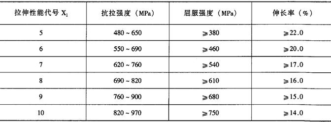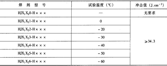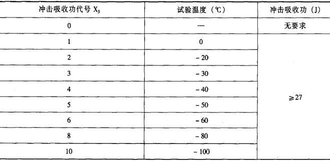 表1-3-8 熔敷金属V形缺口冲击吸收功分级代号(X3)及要求