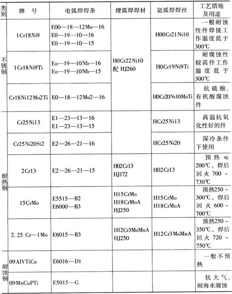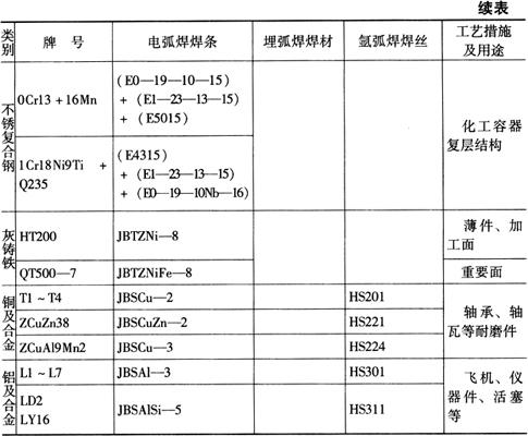 表10-11 特殊性能合金钢、铸铁及铜铝的焊接材料选择