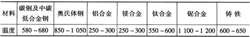 图10-34 铝板熔化极自动氩弧焊焊接规范(对接) (五)焊接热处理规范及尺寸精度的确定 1.碳素钢和低合金钢的焊接预热温度 通常按钢的碳当量范围确定焊前预热温度。当碳当量CE小于0.4%时,焊前可不预热;当碳当量CE等于0.4%~0.6%时,焊前可预热100~200℃;当碳当量CE大于0.6%时,焊前则必须预热200~370℃。 2.常用金属材料焊后消除应力热处理 各种金属材料的焊后处理温度可参考表10-17确定。 表10-17 各种金属材料焊后消除应力热处理温度(℃)