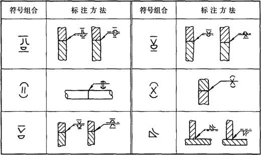 表7-19 焊缝基本符号和辅助符号的组合举例