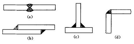 (a)对接接头;(b)搭接接头;(c)丁字接头;(d)角接头