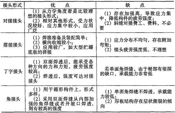 表11-1 四种接头形式的优缺点