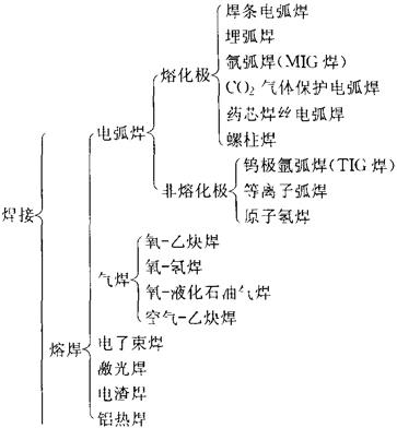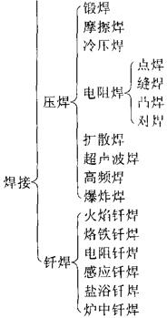 金属的焊接,按工艺过程的特点可分为熔焊、压焊和钎焊三大类,详见图1.1-1。