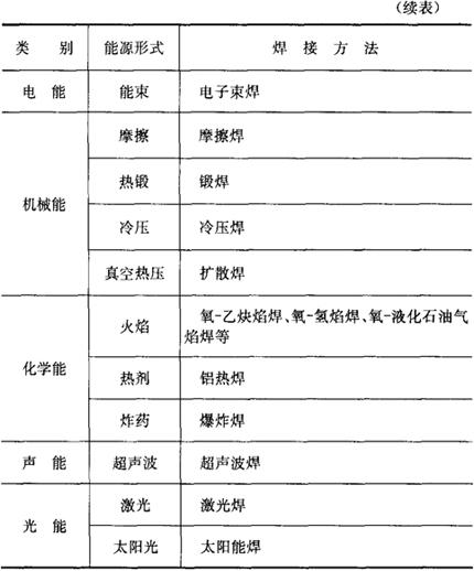 表1.1-1为焊接按外加能量的分类方法。