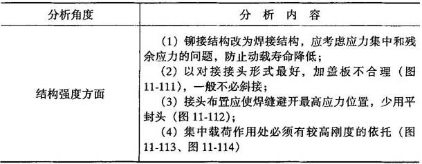 | 释义 | 焊接结构的合理性分析 焊接结构的合理性分析见表11-89. 表11-89 焊接结构的合理性分析