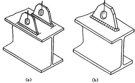 图11-113 支耳的布置形式 (a)支耳背面无依托,应力大,易裂;(b)支耳背面有腹板支撑,应力分布较为均匀,强度得到保证