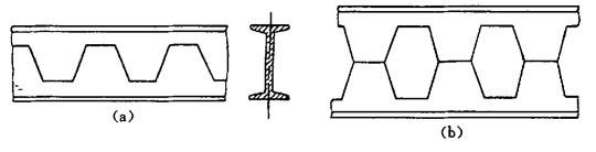 图11-123 锯齿合成梁 (a)把轧制的工具钢按锯齿状切开;(b)将切开的(a)焊成为锯齿合成梁 |