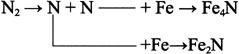 FeO进入熔池还将把钢中一些元素氧化成CO、MnO和SiO2,形成FeO·SiO2、MnO·SiO2等熔渣,使钢中的C、Mn、Si等大量烧蚀。当熔池迅速冷却后,一部分氧化物、熔渣残存在焊缝金属中,会造成气孔和夹渣。 氮与铁会发生下列反应: