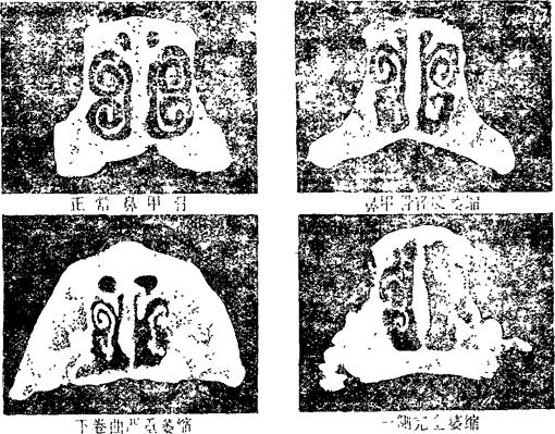 图2-3 猪传染性萎缩性鼻炎鼻甲骨的病变 【处理】 1.生前发现的病猪,应隔离饲养肥育宰杀,头部作工业用或销毁。污染的场圈、工具等应彻底消毒。 2.宰后的病猪肉、内脏不受限制利用,但头部应作工业用或销毁。 |