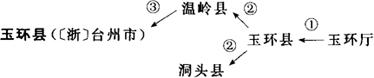 位于东经121°05′~121°32′、北纬28°01′~28°19′之间。 以境内玉环山命名。 ①1912年改玉环厅为玉环县。②1959年4月撤销玉环县,分别划归温岭县、洞头县。③1962年4月恢复玉环县建制。 参见577页“洞头县”。 |