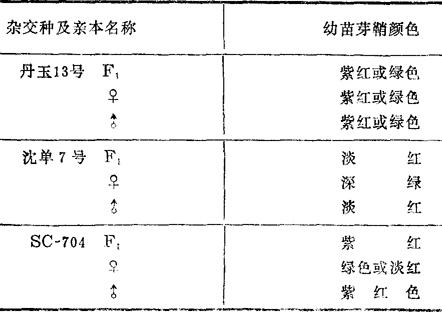 | 释义 | 玉米幼苗芽鞘颜色鉴定法 根据我们和新疆的研究,玉米芽鞘颜色受1-2对基因控制,属遗传上的质量性状,是鉴定玉米品种的有效和可靠的性状(如表18-2)。 表18-2 几个玉米单交种及其亲本幼苗芽鞘颜色的差异