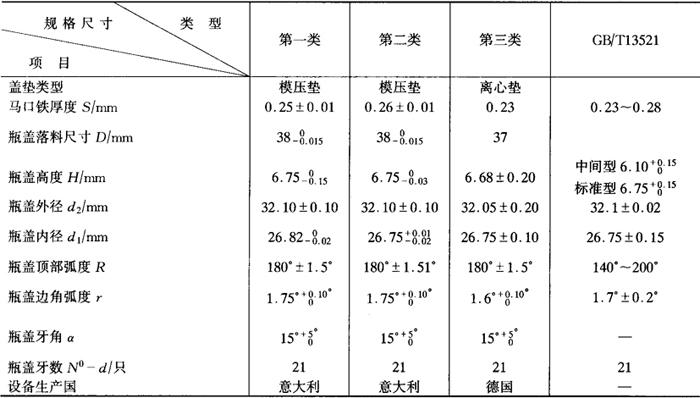 目前我国使用的王冠盖种类和规格见表3-5-1。