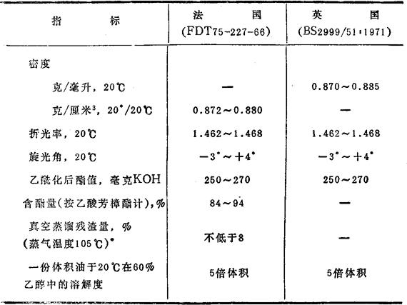 表10.2 根据各国标准巴西玫瑰木油的质量指标