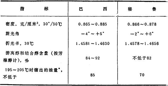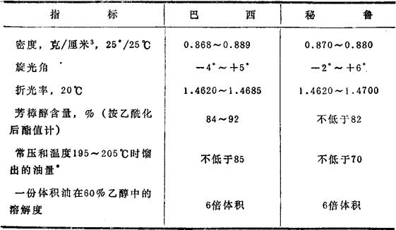 *这一指标的测定方法见附录第232页。 表10.4 根据印度标准IS 3227-1965各国生产的玫瑰木油质量指标
