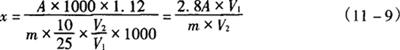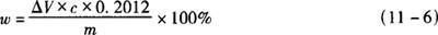 式中 x——样品中环己基氨基磺酸钠的含量,g/kg或g/L 4——样品点相当于环己基氨基磺酸的质量,mg m——样品质量,g V1——加入无水乙醇的体积,mL V2——测定时点样的体积,mL 10——测定时吸取乙醚提取液的体积,mL 25——样品乙醚提取液的体积,mL 1.12——1.00g环己基氨基磺酸相当环己基氨基磺酸钠的质量,g |