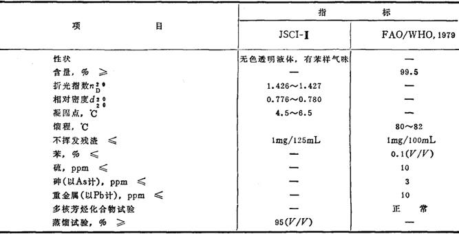 用途 萃取溶剂。油漆脱膜剂、洗净剂、塑料溶剂等。 国内生产厂 湖南岳阳化工总厂、江苏扬州农药厂、江苏靖江农药厂、山西太原化工厂、辽宁辽阳石油化纤总厂。 国外质量规格参考(JSCI-Ⅱ;FAO/WHO,1979)