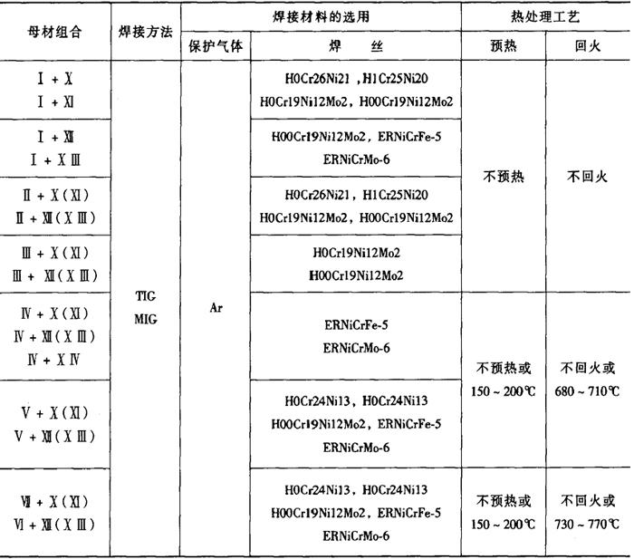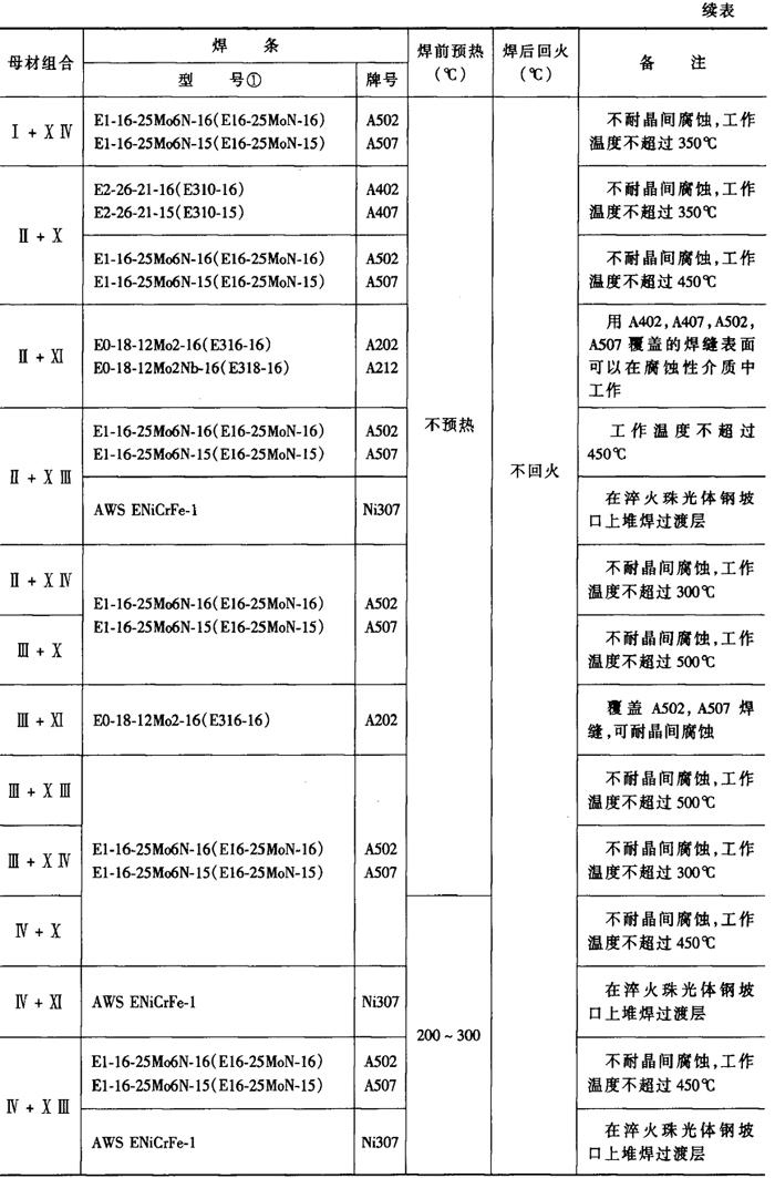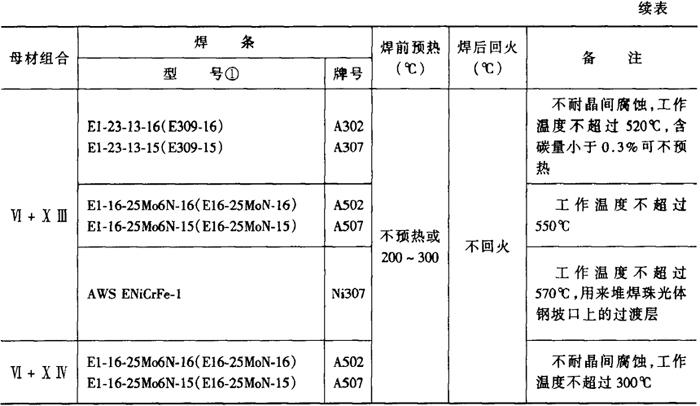 注;①括号内为GB/T983-1995型号。 表2-6-21 奥氏体钢与珠光体钢气体保护焊焊接材料的选择[4]