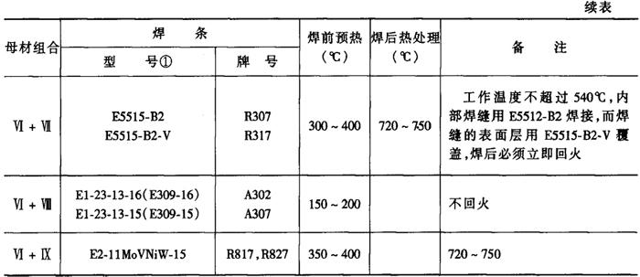 注:①括号内为GB/T983-1995型号。 表2-6-4 异种珠光体钢气体保护焊的焊接材料[4]