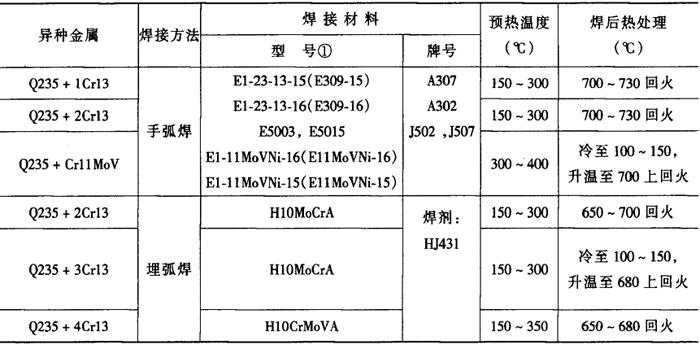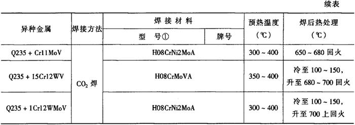 注:①括号内为GB/T983-1995型号。 表2-6-19 Q235+马氏体不锈钢的焊接工艺[3]