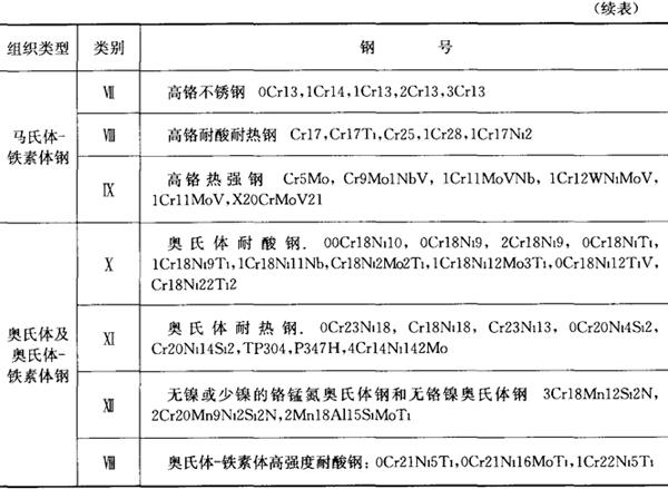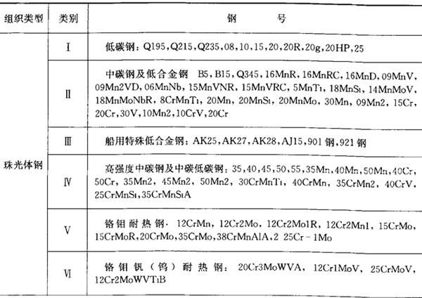 | 释义 | 珠光体钢与铁素体钢的焊接 异种钢焊接结构中所用的钢种,按照金相组织分类,主要有珠光体钢、马氏体-铁素体钢和奥氏体钢三大类,表7.12-2列举了一些常用钢种。选用焊接材料时,应尽量避免焊缝金属产生对裂纹敏感的显微组织、脆性层和低强度区,且在高温下工作不会变脆。 表7.12-2 常用于异种钢焊接结构的钢种