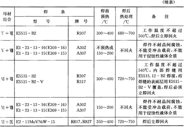 注:括号内为GB/T983-1995型号,下同。 表7.12-4 珠光体与高铬钢气体保护焊的焊接材料