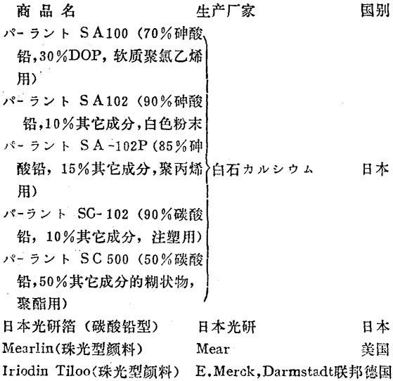 | 释义 | 珠光剂 【释文】: 珠光剂又称珍珠精,其均匀地分布于塑料中后,能在一定角度上强烈反射光线.产生像珍珠一样的晶荧闪光。珠光剂可用于制造珠光钮扣、人造珍珠等各种闪耀美丽珠光的塑料制品。 目前使用的珠光剂有天然珠光剂和合成珠光剂两类。天然珠光剂由带鱼等的鱼鳞制得,一般配制成含鱼鳞35%左右的浆状物。合成珠光剂有碱式碳酸铅、酸性砷酸铅、酰氯化铋三种。碱式碳酸铅是相对密度为6.14的六方晶系薄片状物,大小约为5~20微米。酸性砷酸铅是比重为5.94的单斜晶系薄片状物,大小约为10×3微米。酰氯化铋是相对密度为7.27的正方晶系薄片状物,大小约为5~10微米。珠光剂的耐热性随种类而异,一般在220~250℃的范围内。 近来还出现了一种珠光型颜料,它是由二氧化钛涂于云母表面所制成,在塑料中既有良好的着色性,又可赋予美丽的珠光。 国内生产厂 汕头市实验工厂 天津红星化工厂 国外商品名