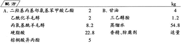 分别将A、B中全部组分混合,加热至85℃,得A、B组分。在搅拌下,将B组分加于A组分中,继续搅拌冷却至30~35℃,即得产品。