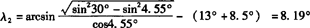 -(13°+8.5°)=8.19° 同理,得λ3=7.21°,λ4=5.48°,λ5=2.78°,λ6=-1.38°,λ7=-8.5°。